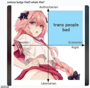 One of the bullets was engraved with the phrase ‘Notices bulge OwO, what’s this?’, a meme often used to troll members of the furry community and transgender individuals.