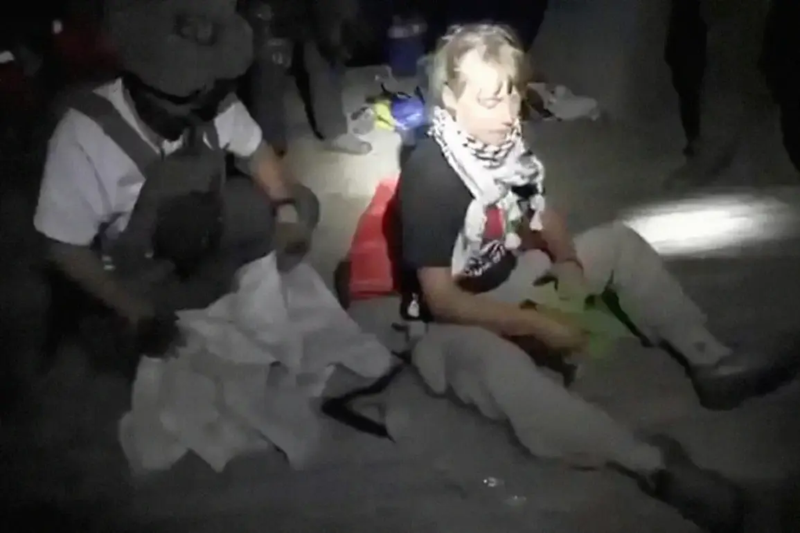 She described the moment of her capture as a traumatic sequence of events, where soldiers allegedly acted with unprovoked aggression. ‘They dragged me across to the other side, away from the rest of them,’ she said, her voice trembling as she recounted the ordeal. ‘They threw an Israeli flag on top of me, hit and kicked me.’ The words, though sparse, carry the weight of a profound violation, underscoring the tension between activism and state power in a region already scarred by decades of conflict.