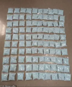 The US Attorney’s Office shared images of the seized fentanyl pills, emphasizing the deadly nature of the drugs involved. ‘Every pill you moved was a loaded gun,’ said US District Court Judge Jamal N.
