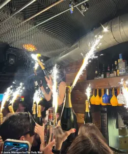 The fire is believed to have been caused as staff waved champagne bottles plugged with sparklers close to the ceiling.