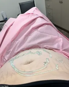 The child’s other parent is absent, a void that Squire has come to terms with, though it has left him feeling isolated during the pregnancy. ‘This isn’t a topic that’s talked about,’ he admitted, his words echoing the loneliness of a man navigating a journey few others can relate to. ‘A pregnant trans guy, are you kidding me?’ The question lingers, a testament to the rarity of his experience and the silence that often shrouds it.