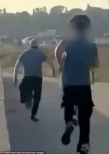 The video, which has been described as ‘shocking’ by legal observers, captures the 49-year-old running for his life as the teenagers give chase, their actions marked by a disturbing sense of calculated violence.