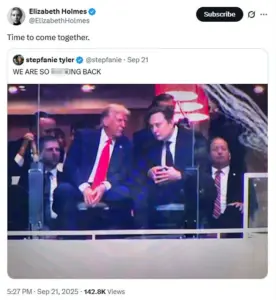 In August, Holmes began making pro-Trump and pro-MAHA posts on X, marking a stunning reversal in her apparent political leanings and the public persona she had previously displayed on the platform. This tweet and those below are a few examples