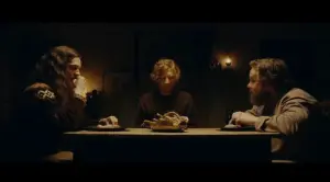 In the eerie scene shared at Sundance, Rankin’s character is seen devouring a plate of roast seagull, with Gleeson’s character reacting in visible discomfort.