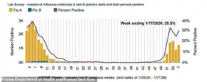 The state’s flu activity remains ‘high,’ with 29 percent of flu tests coming back positive during the week of January 17, a rate significantly higher than the national average of 18 percent.